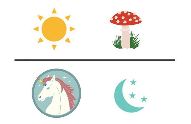 For example, the correct answer above would be to pick the sun and the moon — both belong to the category of celestial objects. But you could also pick the mushroom and unicorn, arguing that being on shrooms could make you see unicorns. There are many such out-of-the-box reasoning possible, and you can imagine how things can escalate quickly once the number of pictures goes from four to 16.