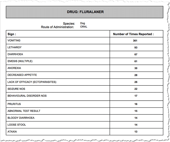 Here are some of the adverse reactions reported for NexGard (afoxolaner) and Bravecto (fluralaner):